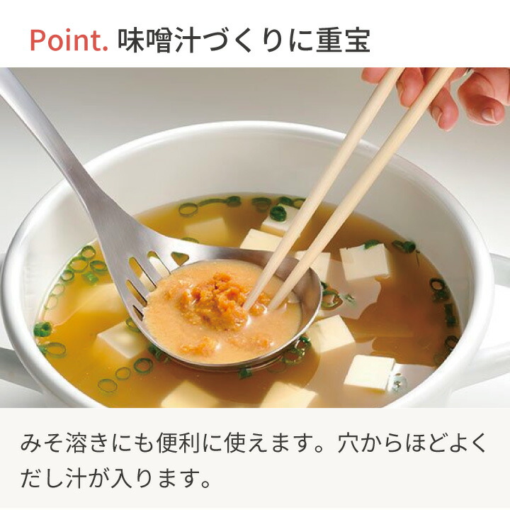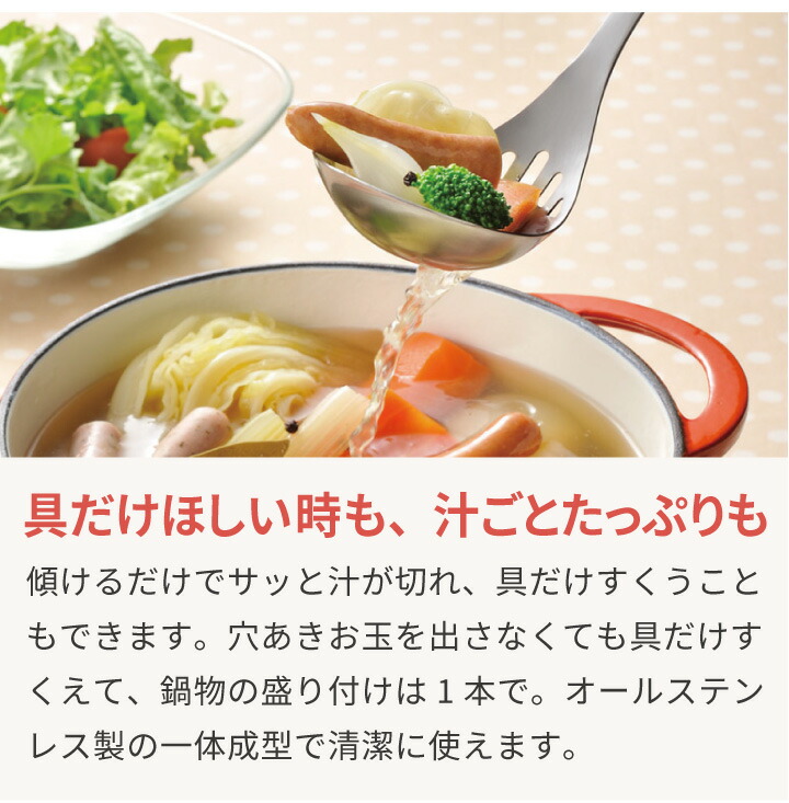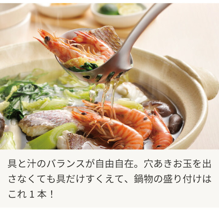 ●穴あきお玉を出さなくても具だけすくえて、鍋物の盛り付けは1本で。