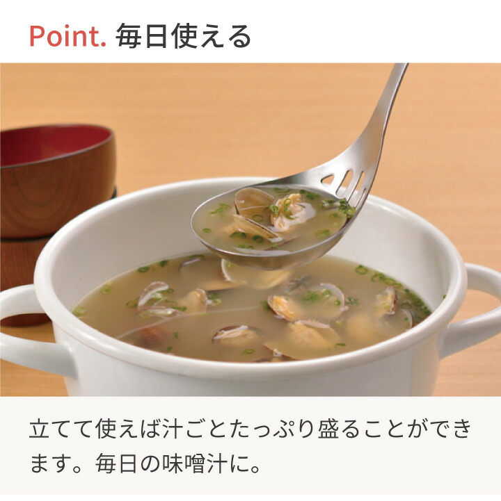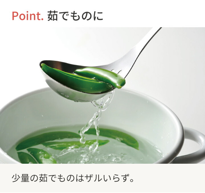 ●傾けるだけでサッと汁が切れ、具だけすくうこともできます。