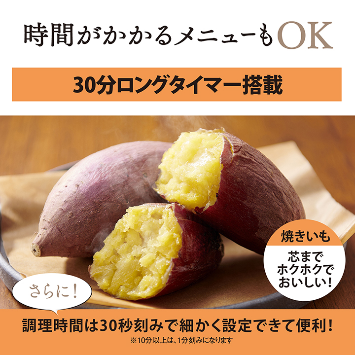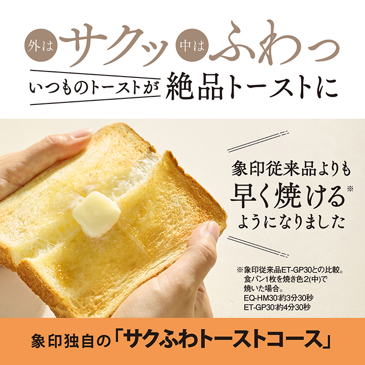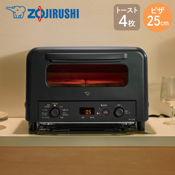 ●効率的に熱を伝え、すばやく焼き上げる石窯仕立ての独自構造。 石窯をイメージしたアーチ状の入口が、庫内の熱を逃がしにくくします。 また、ヒーターからの熱を象印独自の庫内構造で効率よく食材へ伝えることで、 トーストやピザを格別のおいしさに焼き上げます。 ●表面はサクッ、中身はふわっとした食感のトーストが焼ける 「サクふわトースト」コース。 象印独自の温度コントロールで、表面をやさしく焼いてサクッとさせた後、 パンの内側の水分をしっかり閉じ込めたまま急速で焼き上げ、 絶品トーストに仕上げます。 ●食材の温度を検知し、自動で温度調整しながら焼き上げる、 便利な8つの「マイコン自動コース」を搭載。 8つの専用コースを選ぶだけで、手間なくおいしく仕上がります。 1.トースト 2.サクふわトースト 3.冷凍サクふわトースト 4.アレンジトースト 5.ピザ 6.冷凍ピザ 7.フライあたため 8.ロールパンあたため |