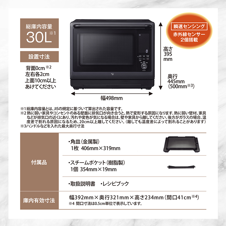 【送料無料】象印 オーブンレンジ EVERINO ES-LA30 BA 30L ブラック 同梱不可 エブリノ