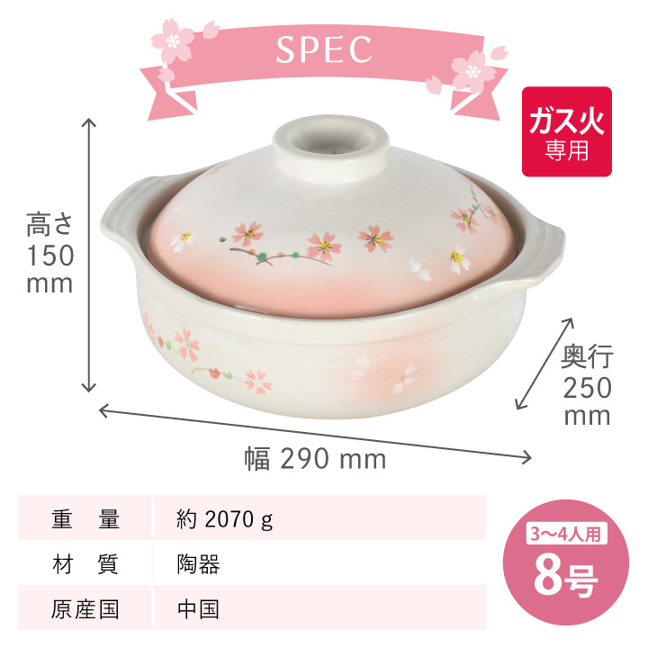 土鍋 8号 桜日和 L-1974 パール金属 3人〜4人用 ガス火専用