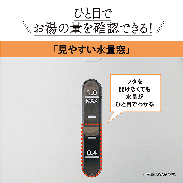 ●6つの安全設計! ・転倒湯もれ防止構造 ・本体二重構造 ・自動電源オフ ・空だき防止 ・給湯ロックボタン ・蒸気セーブ構造 ●清潔! ・ロックボタンと連動して注ぎ口が開閉する ほこりの入りにくい「注ぎ口ほこりブロック」 ●必要な分だけすぐに沸く! ・「ハイパワー1300W」でカップ1杯(140mL)約60秒 ●ひと目でお湯の量を確認できる「見やすい水量窓」 ●流線がなめらかで注ぎやすい「なめらか注ぎ口」 ●スムーズに取りはずせて給水もお手入れも楽な 「軽くはずせるふた」 ●持ちやすい形状のハンドル ●湯沸かし中が一目でわかる「湯沸かしランプ」 ●取り扱い説明書が確認できる二次元コードつき |