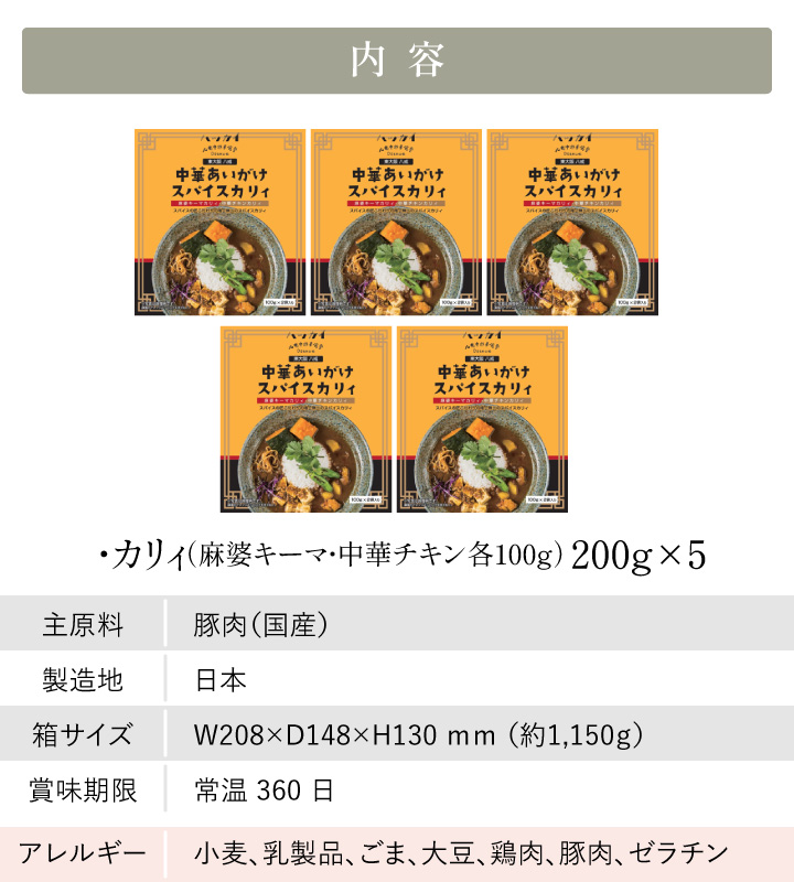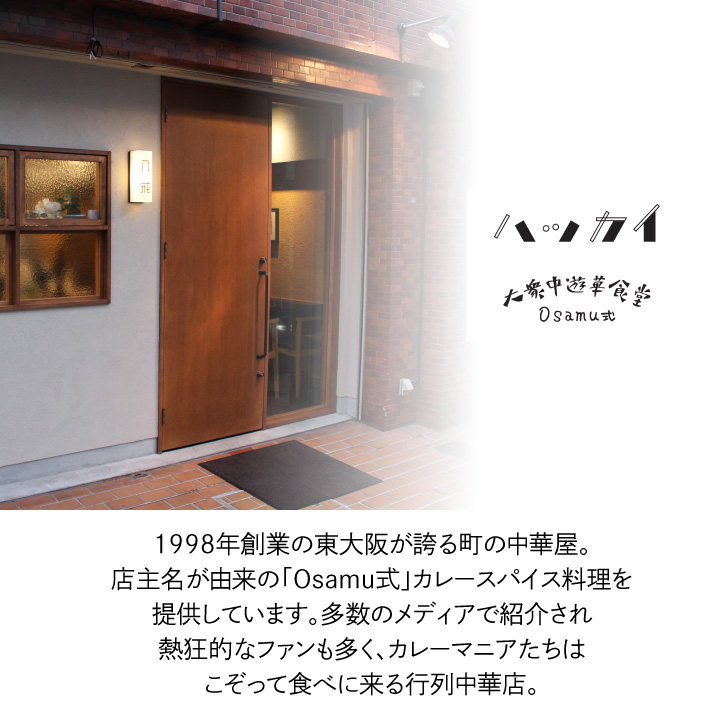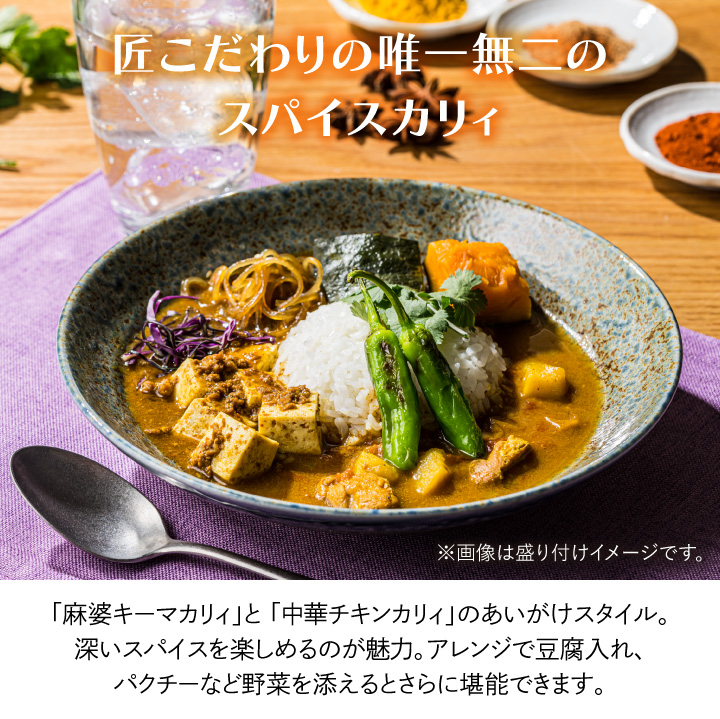 2026年3月20日までの期間限定販売! ●大衆中遊華食堂・八戒(ハッカイ)は 1998年創業の東大阪が誇る町の中華屋。 多数のメディアで紹介され熱狂的なファンも多く、 カレーマニアたちはこぞって食べに来る行列中華店。 ●匠こだわりの唯一無二のスパイスカリィ5個セット。 麻婆キーマカリィと中華チキンカリィのあいがけスタイル。 ●深いスパイスを楽しめるのが魅力。 アレンジで豆腐を入れ、パクチーなどの野菜を添えるとさらに堪能できます。 |