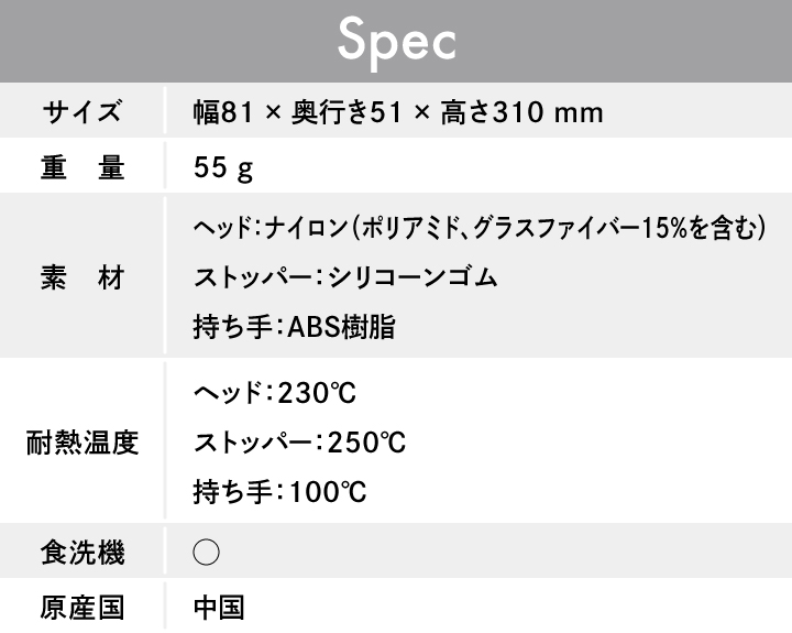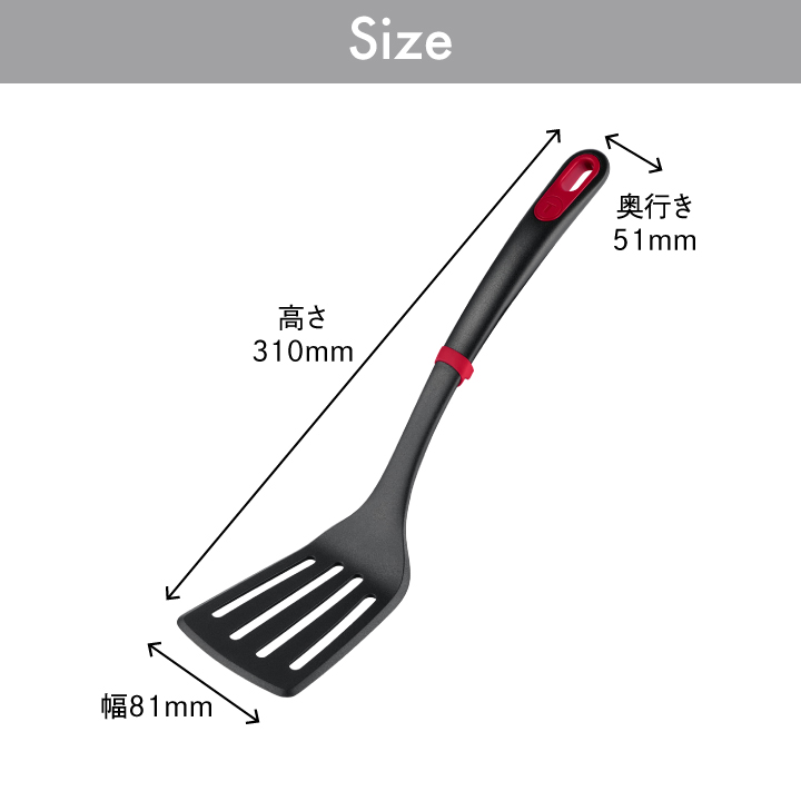 ●フライパンや鍋のフチから滑り落ちないシリコーンストッパー付き。