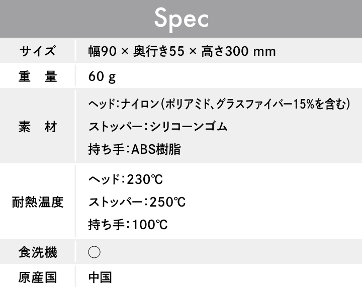 ●フライパンや鍋のコーティングを傷つけにくいナイロン製。