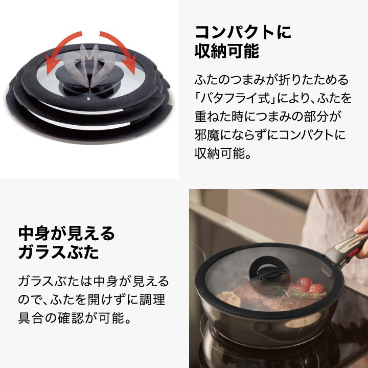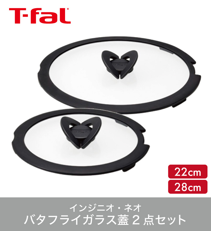 くらし屋オリジナル ティファール ガラス蓋2点セット インジニオ・ネオ バタフライガラスぶた 22cm L99364 + 28cm L99367
