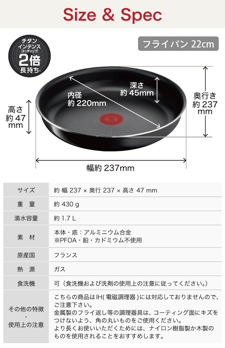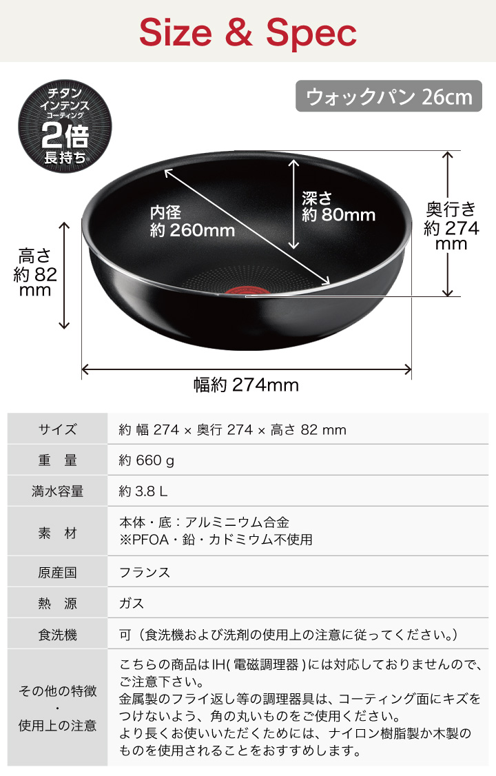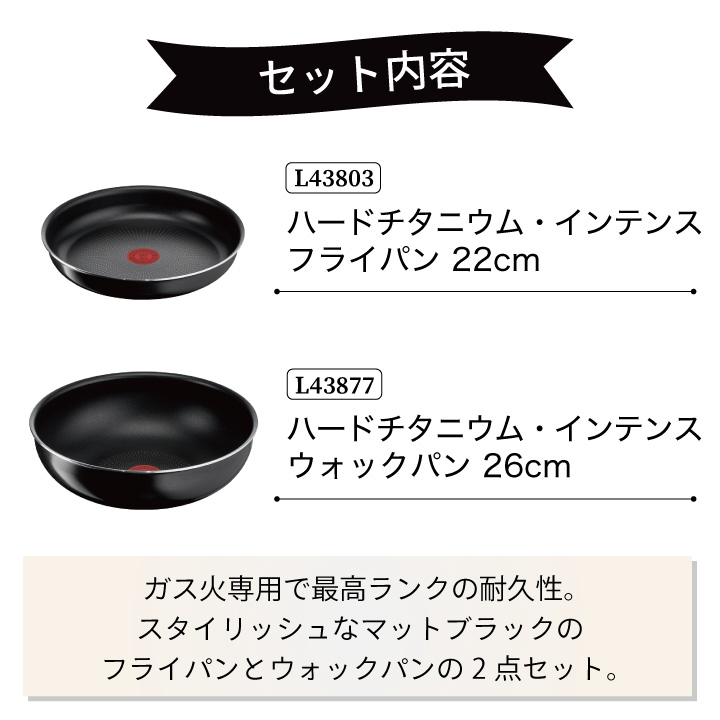 ・フライパン 22cm(チタン・インテンス コーティング)…1個 ・ウォックパン 26cm(チタン・インテンス コーティング)…1個 |