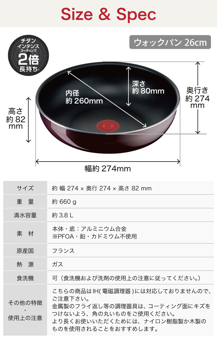 ・フライパン 26cm(チタン・インテンス コーティング)…1個 ・ウォックパン 26cm(チタン・インテンス コーティング)…1個 |
