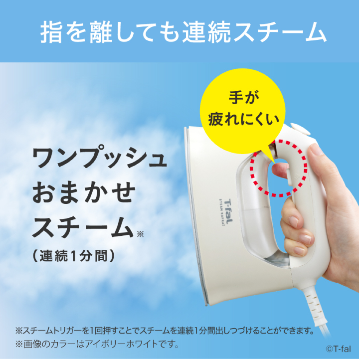 大量スチームで衣類、まるごとリフレッシュ! ●圧倒的なパワフルスチーム。 ●かけ面の幅が広く、すみずみまで熱とスチームが届く。 ●ダブル先細りチップの付いたかけ面(セラミック)。 ●指が疲れにくいワンプッシュおまかせスチーム。 ●360°どの角度でもスチームできる。 ●水量ち上が見やすい大容量タンク。 ●早い立ち上がり時間。 ●超軽量コンパクトボディ。 |