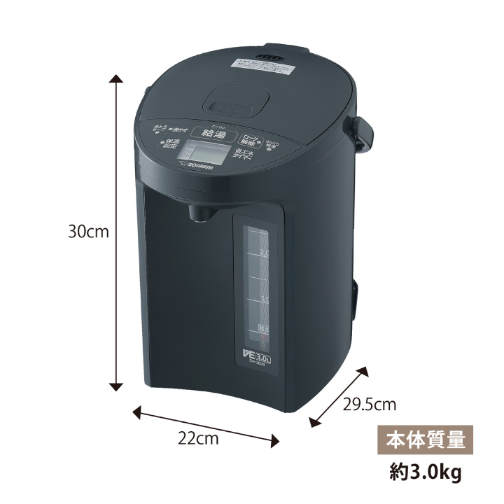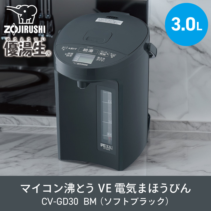 【送料無料】象印 VE電気まほうびん CV-GD30 BM ソフトブラック 3l 優湯生 同梱不可