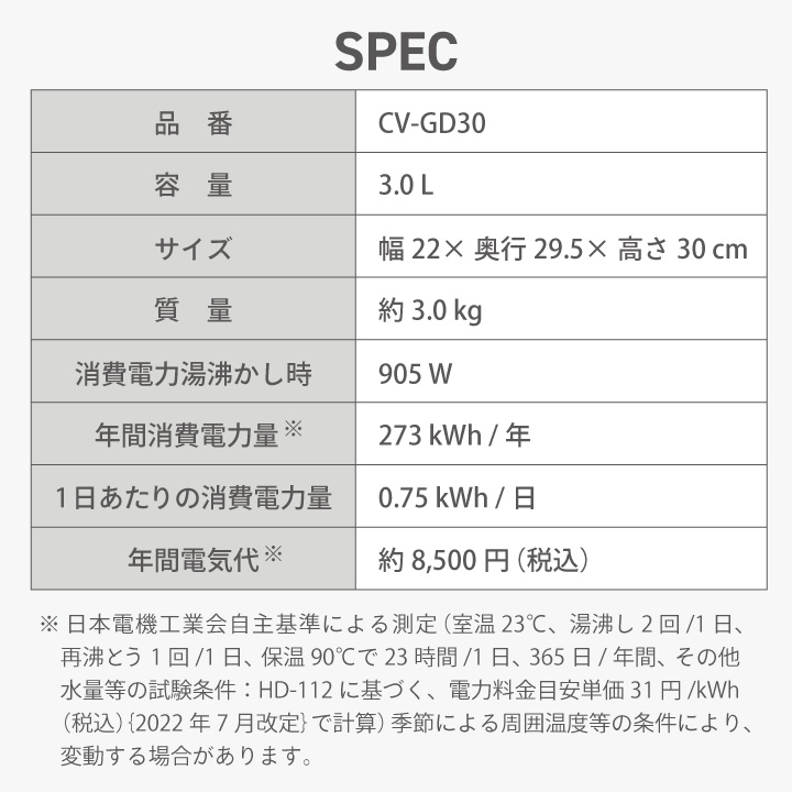 湯沸かし時間、消費電力量、蒸気を抑える「沸とうセーブ」も選択可能!