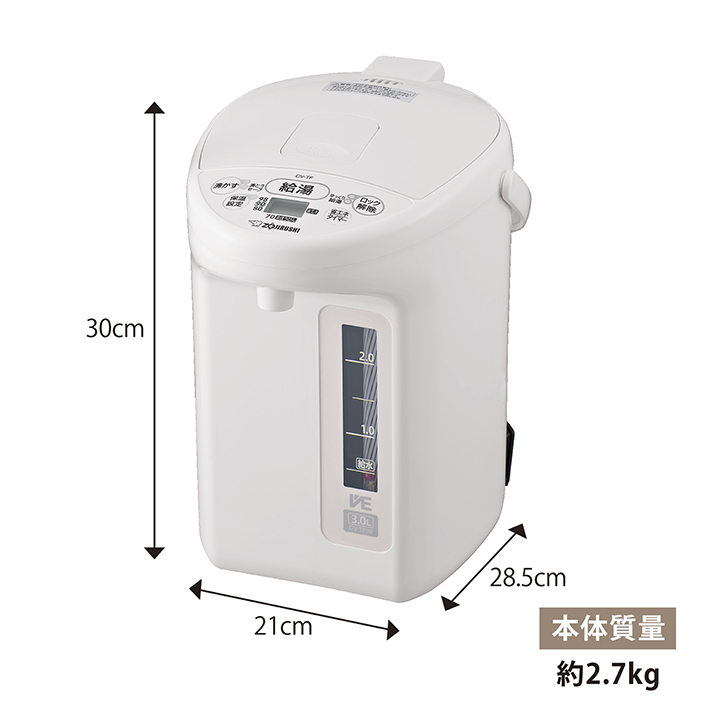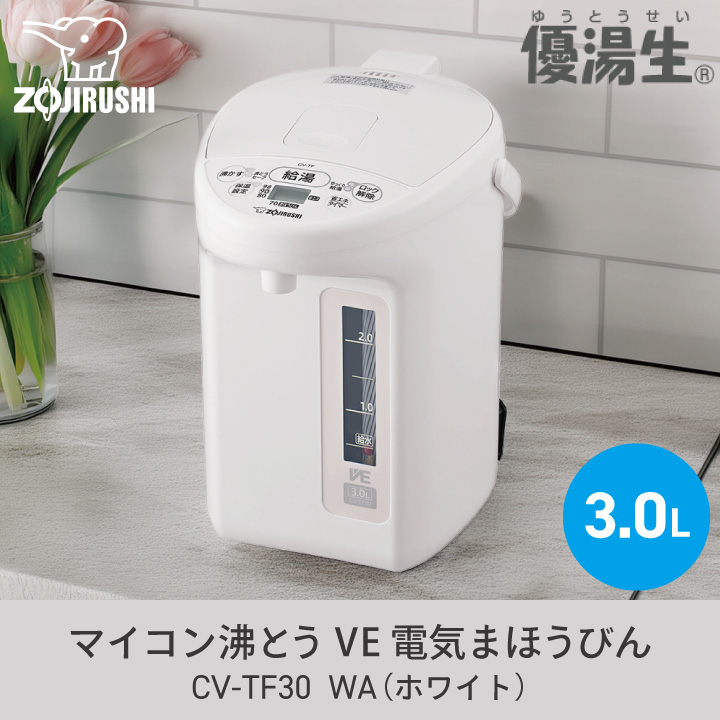 【送料無料】象印 VE電気まほうびん CV-TF30 WA ホワイト 3l 優湯生 同梱不可