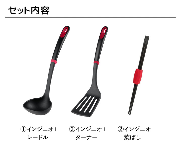 ティファール キッチンツール インジニオ 3点セット レードル おたま ターナー フライ返し 菜箸 菜ばし デザイン おしゃれ 使いやすい 持ちやすい 傷つけない 耐熱 温度 220℃