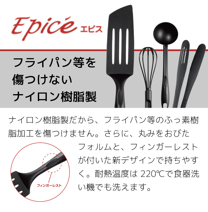 ◆ふっ素樹脂加工のフライパン等を傷めにくい、ナイロン樹脂製。